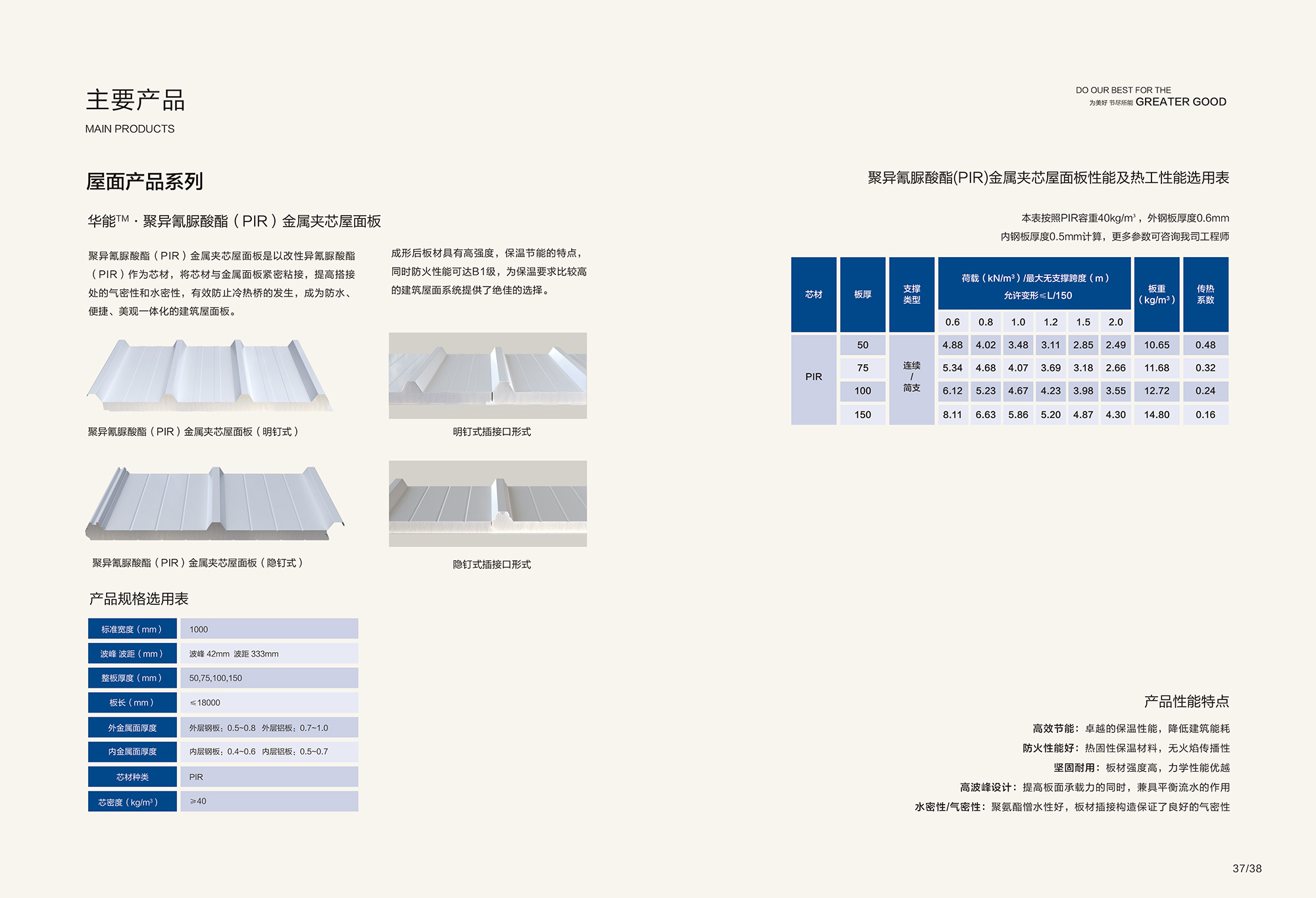 • 聚异氰脲酸酯(PIR)金属夹芯屋面板